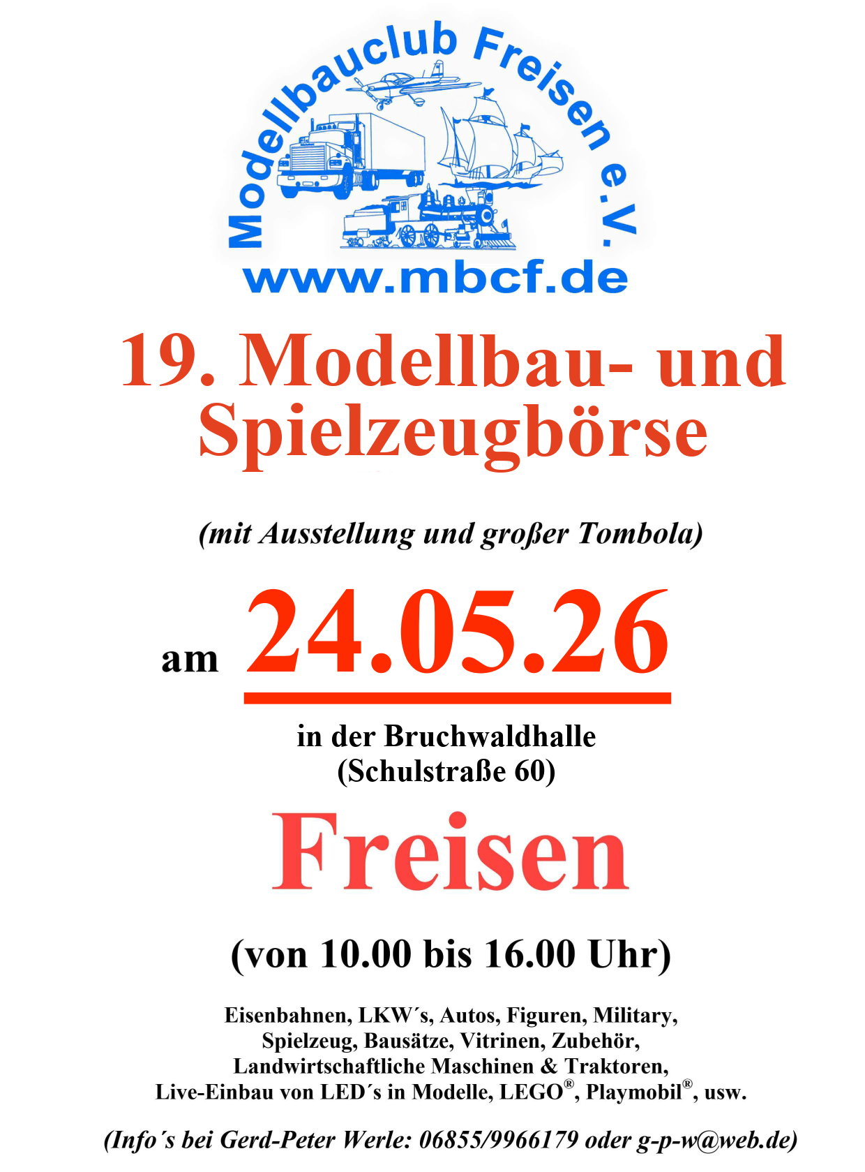 Bürgermeister Scheer bedankte sich ebenfalls beim MBCF für die gute Visitenkarte, die der Modellbauclub, nicht nur während des Steinelands, für die gesamte Gemeinde Freisen abgibt. Der Modellbauclub sei mittlerweile ein Aushängeschild für Freisen, da hier eine hervorragende Jugendarbeit gepaart mit einer zupackenden Vereinsführung immer wieder neue erfolgreiche Veranstaltungen entstehen lässt und das Freisener Vereinsleben bereichert. Neben der jährlichen Modellbaubörse, dem Steineland, der langen Nacht der Modellbahn, wird nun auch in 2018 die Veranstaltung „Playmoland Saar 2018“ die Veranstaltungsreihe erweitern. Bürgermeister Scheer versprach dem MBCF auch für die Zukunft jede Art von Unterstützung, die er im Rahmen seines Amtes anbieten kann.